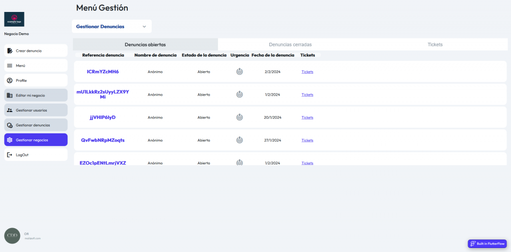 Las denuncias se almacenaran durante al menos 4 años desde que se presenta la denuncia. Esto te permite aportar esta documentación en auditorias.