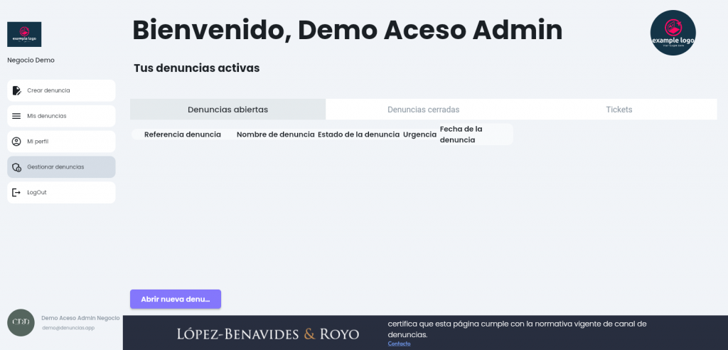 La herramienta registra automáticamente todas las denuncias en diferentes categorías: abiertas, rechazadas, resueltas y archivadas. Seguir el proceso mencionado satisface los requisitos normativos sin necesidad de acciones adicionales por parte de la empresa.